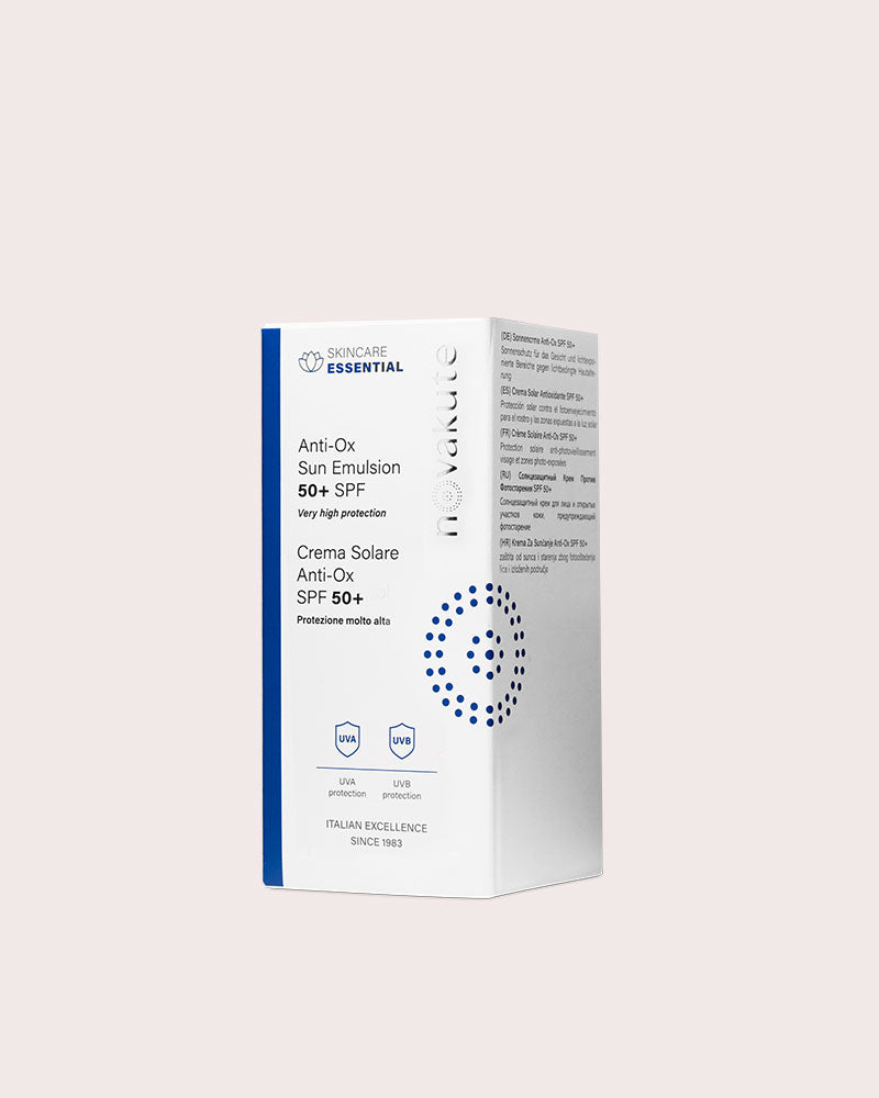 „Anti-Ox Sun“ emulsija pasižymi drėkinamosiomis, antioksidacinėmis ir senėjimą stabdančiomis savybėmis, kurios padeda išvengti tamsių dėmių, spalvos pakitimų, melazmos ir raukšlių.