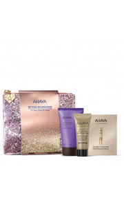 Odos priežiūros priemonių rinkinys iš Ahava švytinčiai ir jaunatviškai odai.